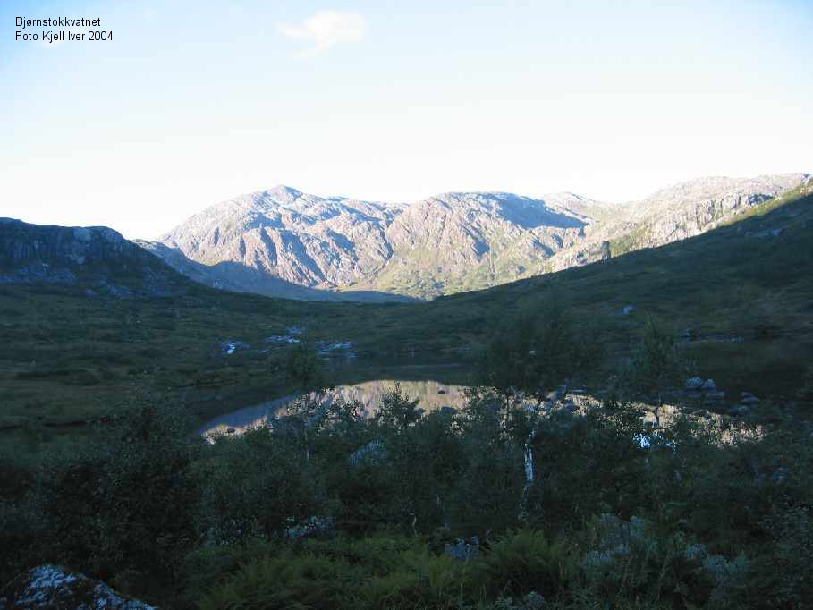 | Turen ned gikk veldig lett. Det var varmt og jeg tok det med ro. Fant ut at jeg skulle krysse elva høyere opp denne gangen. Se kart. Her kunne jeg krysse uten å ta av støvlene, men det var veldig myrete langs Bjørnstokkvannet. Neste gang jeg skal opp, vil jeg krysse elva på nedsiden av fossen og gå direkte mot Rånåfjellet, om elva er så liten som nå. |