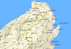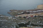 Etter at vi er kommet til toppen tenker vi på å gå opp til Romsskåla, som er øyas høyeste punkt, men det er kommet så langt på dag at vi innser at det vil være stupmørkt før vi er nede. Hodelykt har vi fortsatt ikke med. Det er også ganske så mye tyngre å gå her i høyden og skiene savnes sårt! Romsskåla - øyas høyeste punkt på 588 moh ca 3-4 km unna.