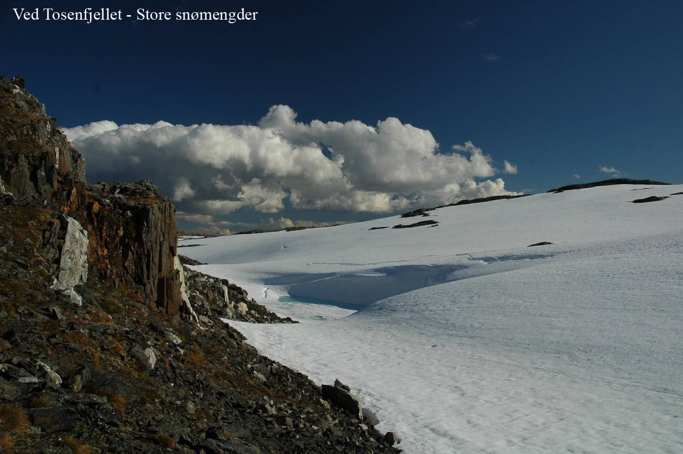 Jeg bestemmer meg for å holde meg i høyden og trekke over mot Mosvasstinden. Underveis passerer jeg et område med store snømengder og is på vannet som jeg tok bilde av. Et blinkskudd? Vet ikke - men jeg synes det er et fint billet :)