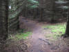 være spesielt sprek. Bjørufjellet har vært med i Fjelltrimmen i mange år. Stien er lettgått opp lia, og det er litt spesielt at man kommer inn i en mørk granskog på veien mot toppen. Siden det var disig og fuktig vær, var det veldig lummert inn i skogen, og ikke lett å fange noe godt bilde. Etterhvert som jeg nærmet meg toppen, lettet skydekket litt og jeg fikk bra utsikt utover.