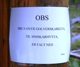 Heldigvis skiltet om at broen var nede.