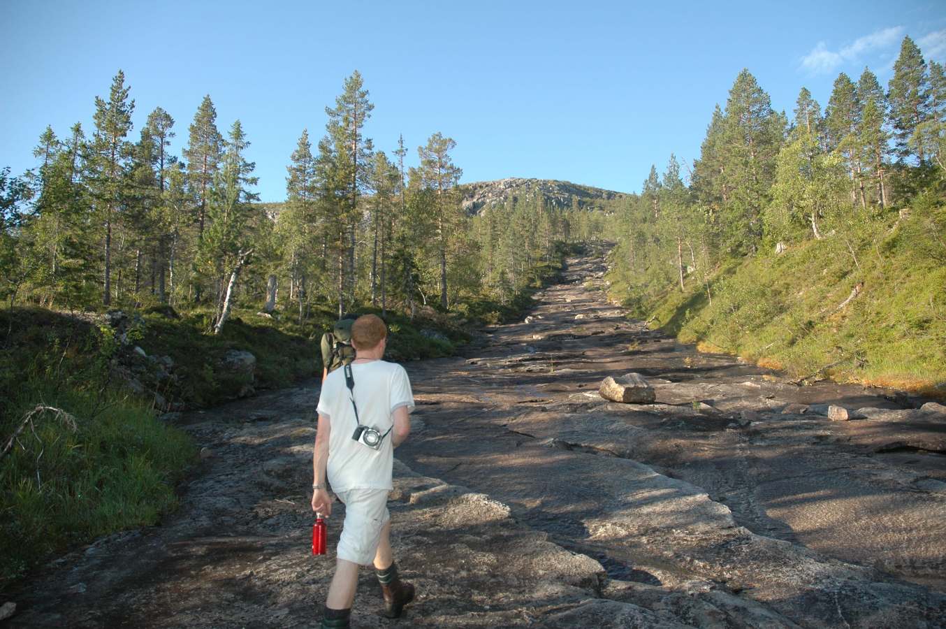 Fra forrige gang jeg var her husker jeg en bekk som vi fulgte opp over Grønnfjellet, og denne finner vi tilbake til denne gangen. Denne bekken kaller vi heretter heisen, for den fungerte som en heis!