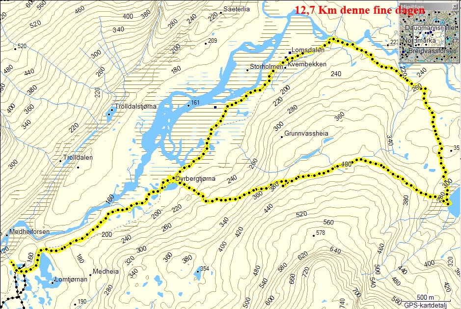For de som er kjent kan man se at vi tok en snarvei ved Lappskardet, I