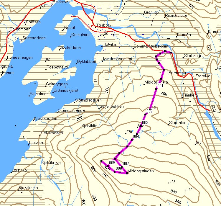 opp på Middagstinden ved Tosen. Vi er ikke der inne før i 19 tiden på