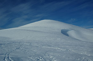 som rant som laget en sprekk i snøen på 2-3 meter høyde, noe som gjorde at