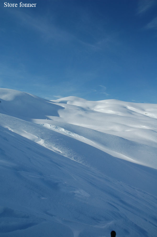 jeg måtte gå en stor omvei for å krysse. Et av snøhengene over dalen var