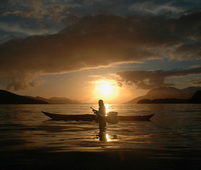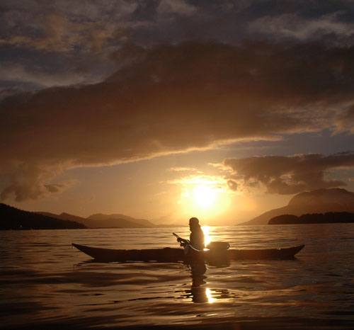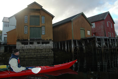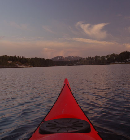 både kajakken og skiene med innover, for om mulig å få en kajakktur, og