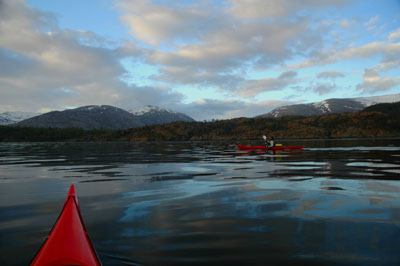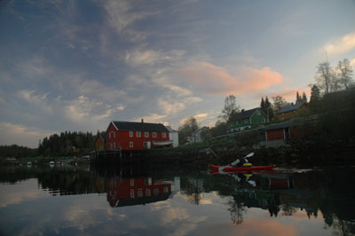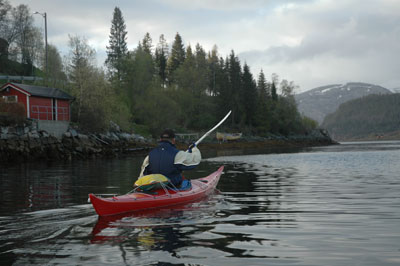 dager etterpå en skitur i Børgefjell. Sendte SMS til aktuelle padlere på telefonlisten min for å høre om noen ville være med og ta en tur på impuls. Det passet for Johan Arnt som er veldig godt kjent i Velfjord, og vi bestemte oss for å padle ut fra Hommelstø. |