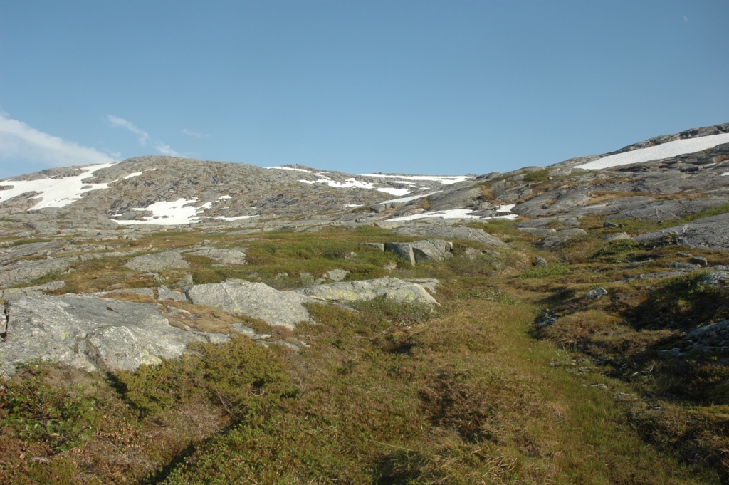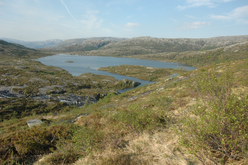 Jeg ser frem til å komme frem til Botnvatnan. Jeg har fundert litt på å telte her om det ser fint ut. Botnvatnan - i 18 tiden på kvelden.